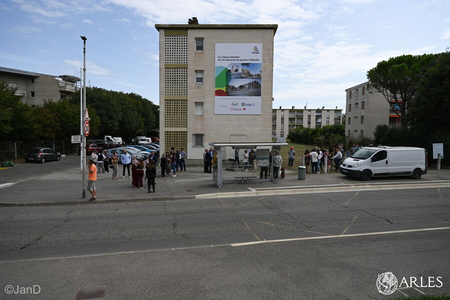 Les habitants ont répondu à l'invitation de Vilogia, le 12 septembre, pour le lancement officiel des travaux de rénovation de leurs immeubles et logements. photo Jan Dyver/ville d'Arles.
