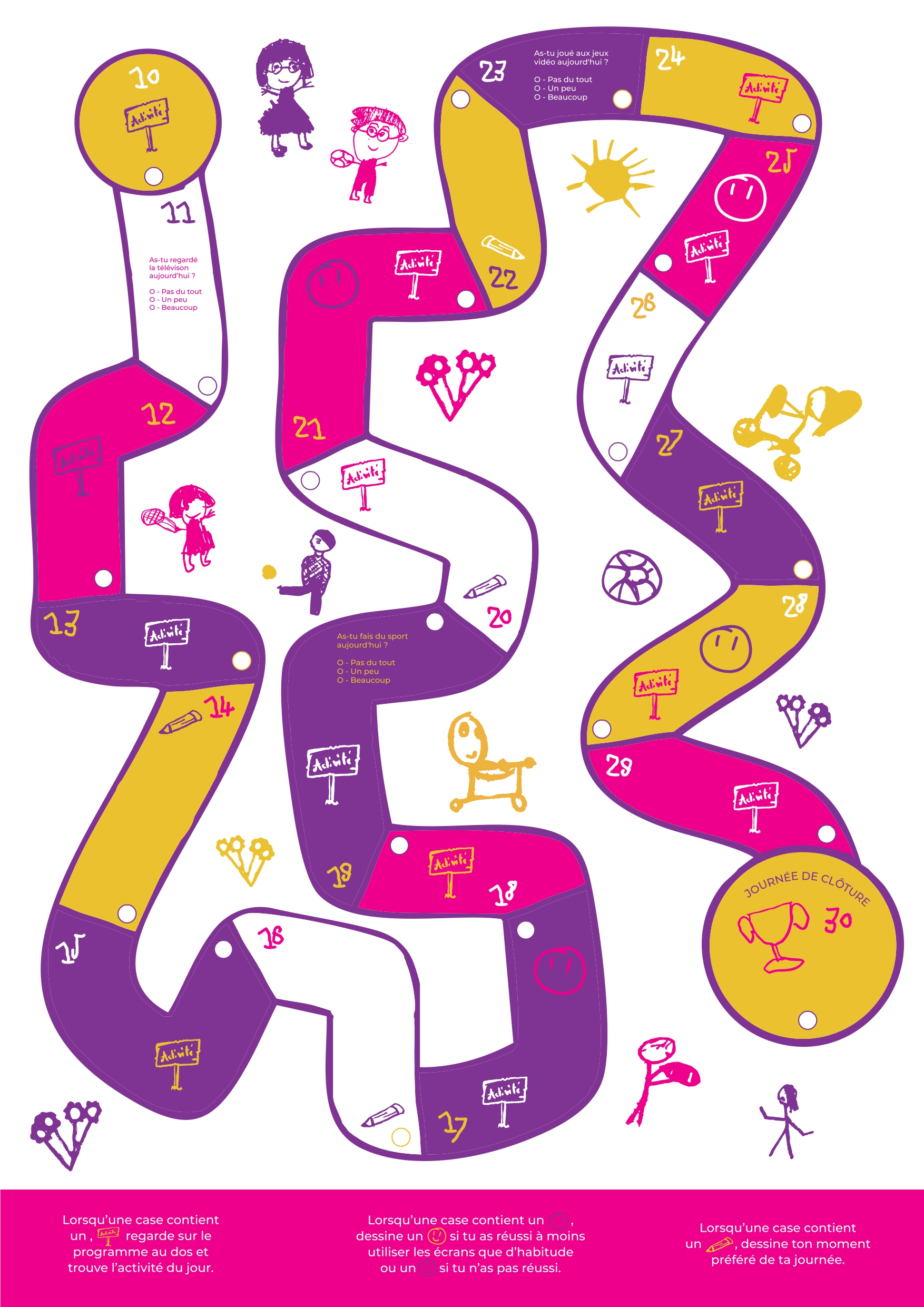 Si les enfants entre 3 et 10 ans sont invités à récupérer un livret de suivi (au centre social Mas Clairanne au Trébon, au centre social Christian Chèze à Barriol, à la Maison publique de quartier de Griffeuille, ainsi qu’à l’ACCM) pour leur permettre de noter tous leurs efforts au cours du challenge, il reste aussi une dizaine de jours d’actions et d’animations gratuites dont profiter.