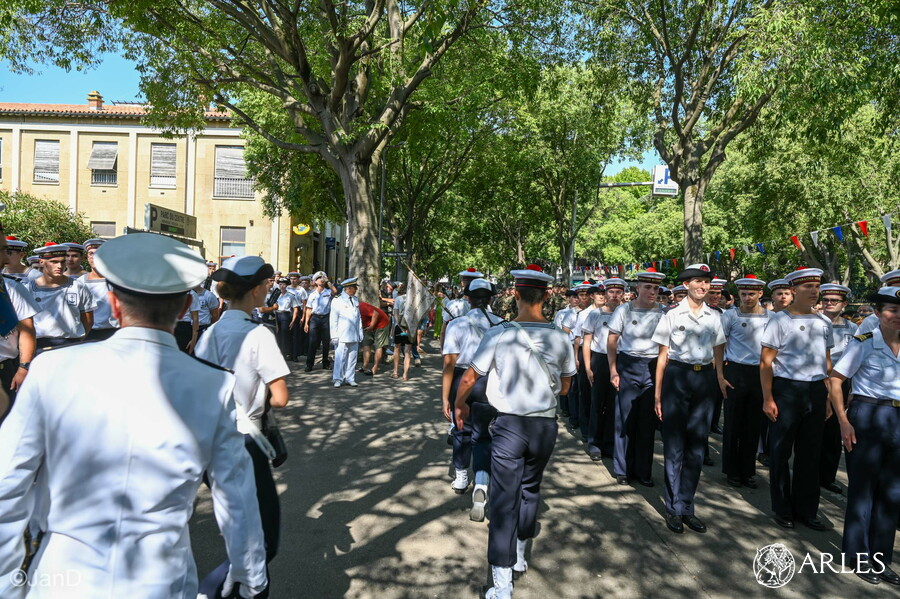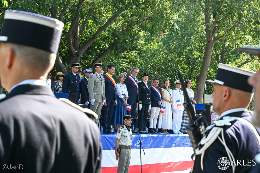 Parmi les invités officiels figuraient aux côté du maire la sous-préfète d’Arles, Cécile Langlet, le conseiller régional Cyril Juglaret, la conseillère départementale Mandy Graillon, également deuxième adjointe déléguée à la sécurité, le député Emmanuel Taché de la Pagerie, la reine d’Arles Amélie Laugier, ainsi que le colonel Aurélien Boutet, chef de corps du 25e Régiment du Génie de l’Air d’Istres, qui a procédé à la revue des troupes avant le début du défilé, ou encore le chef d’Escadron Florian Gerbal, en partance de la gendarmerie d’Arles après trois ans de commandement.