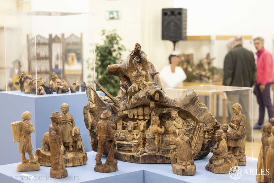 D’un côté les professionnels, de l’autre les amateurs : les réalisations de plusieurs dizaines de santonniers et créchistes y sont exposées à travers leurs différents styles et interprétations. Parmi eux, Serge Vincent est le sculpteur mis en avant pour cette 68ème édition. Après 14 ans d’absence dans les vitrines du Salon, le Provençal est de retour avec ses figurines et la finesse de leurs lignes, la richesse de son bestiaire, et l’exotisme qui se dégage des scènes qu’il reproduit.