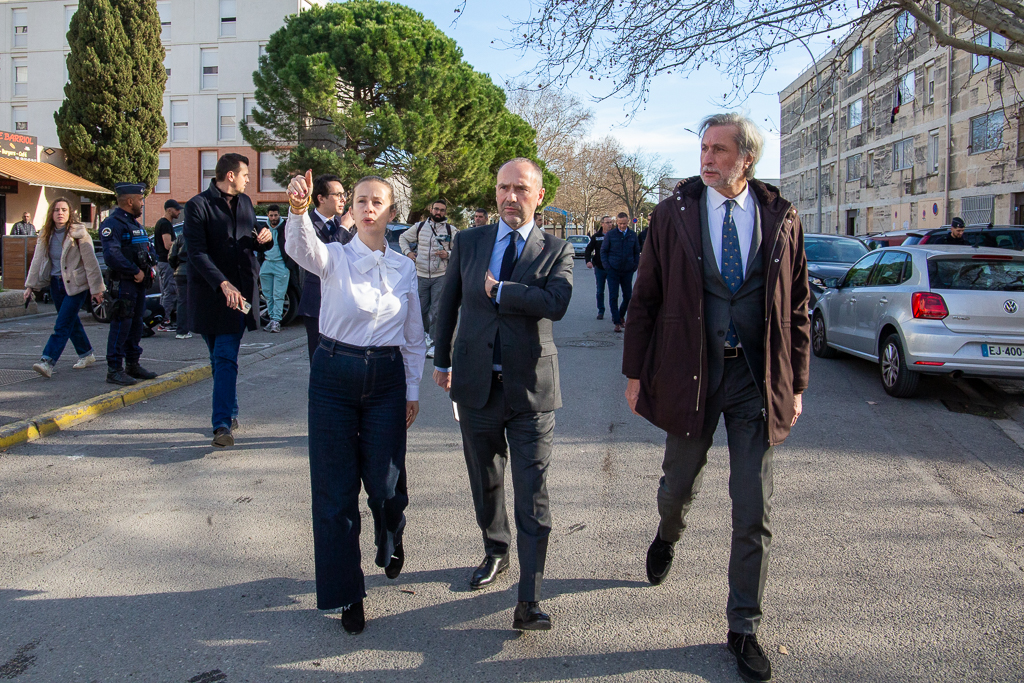 Accueilli par le maire d’Arles, Patrick de Carolis, son adjointe déléguée à la sécurité, Mandy Graillon, et son adjoint en charge du quartier de Barriol, Erick Souque, Pierre-Edouard Colliex a notamment assisté à une opération anti-drogue à Barriol, avec l’aide d’un chien spécialisé dans la détection des produits stupéfiants, venu de Marseille. “Ces opérations sont menées régulièrement et “gènent” les trafiquants, a expliqué le commissaire de police d’Arles, François Toulouse. “Elles complètent le travail régulier, sur le terrain, qui est mené par les agents.”