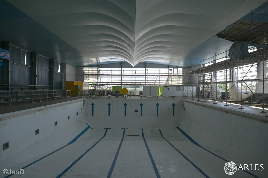 Gymnase Fournier. L’antre du Volley-Ball Arlésien a bénéficié d’un changement des plafonds avec la mise en place de pare ballons. L’étanchéité a été du même coup amélioré tout comme la sécurité et l’acoustique. Coût de l’opération : 80 000€, financés à 70% par le Département et 30% par la Ville.