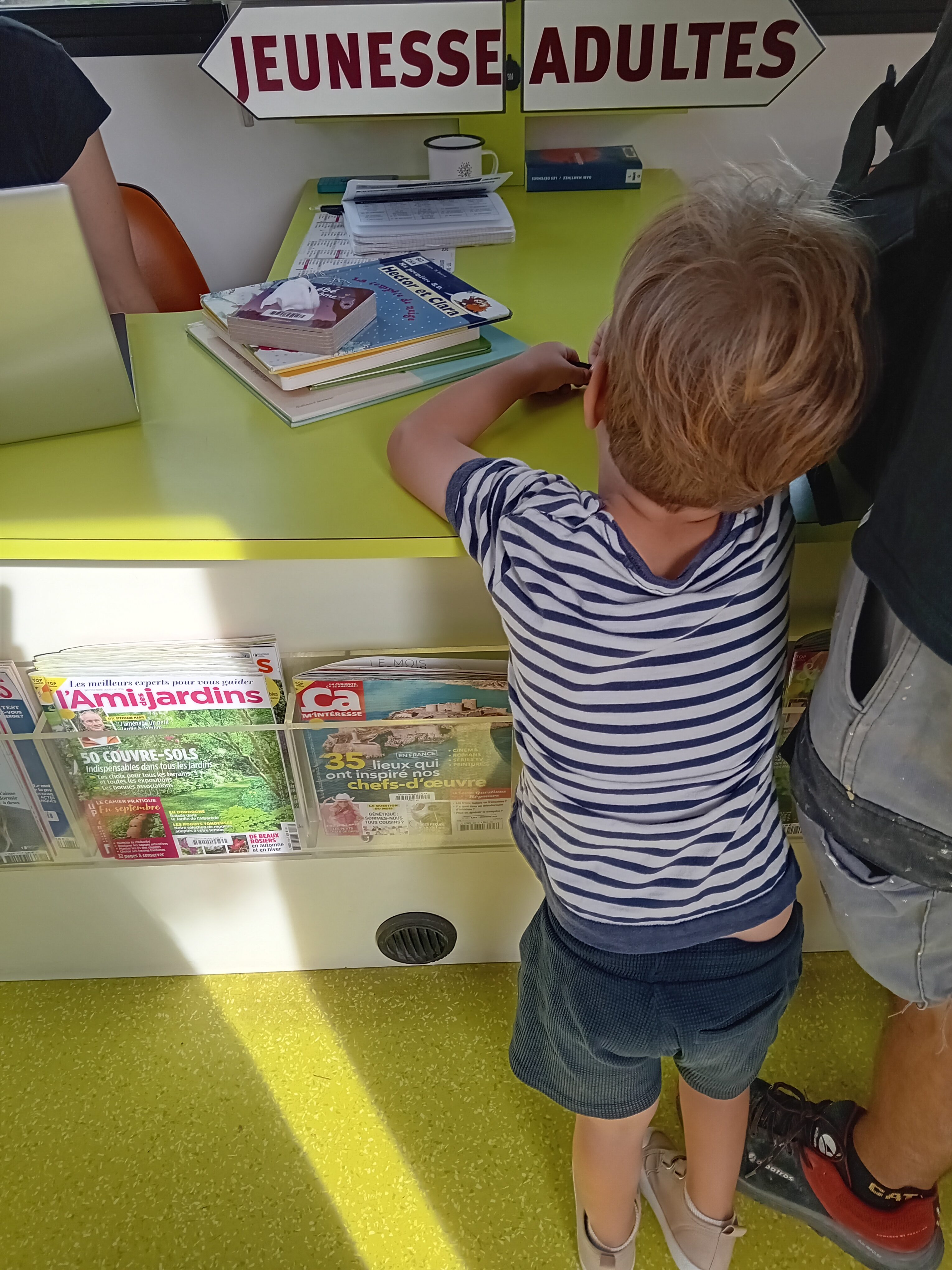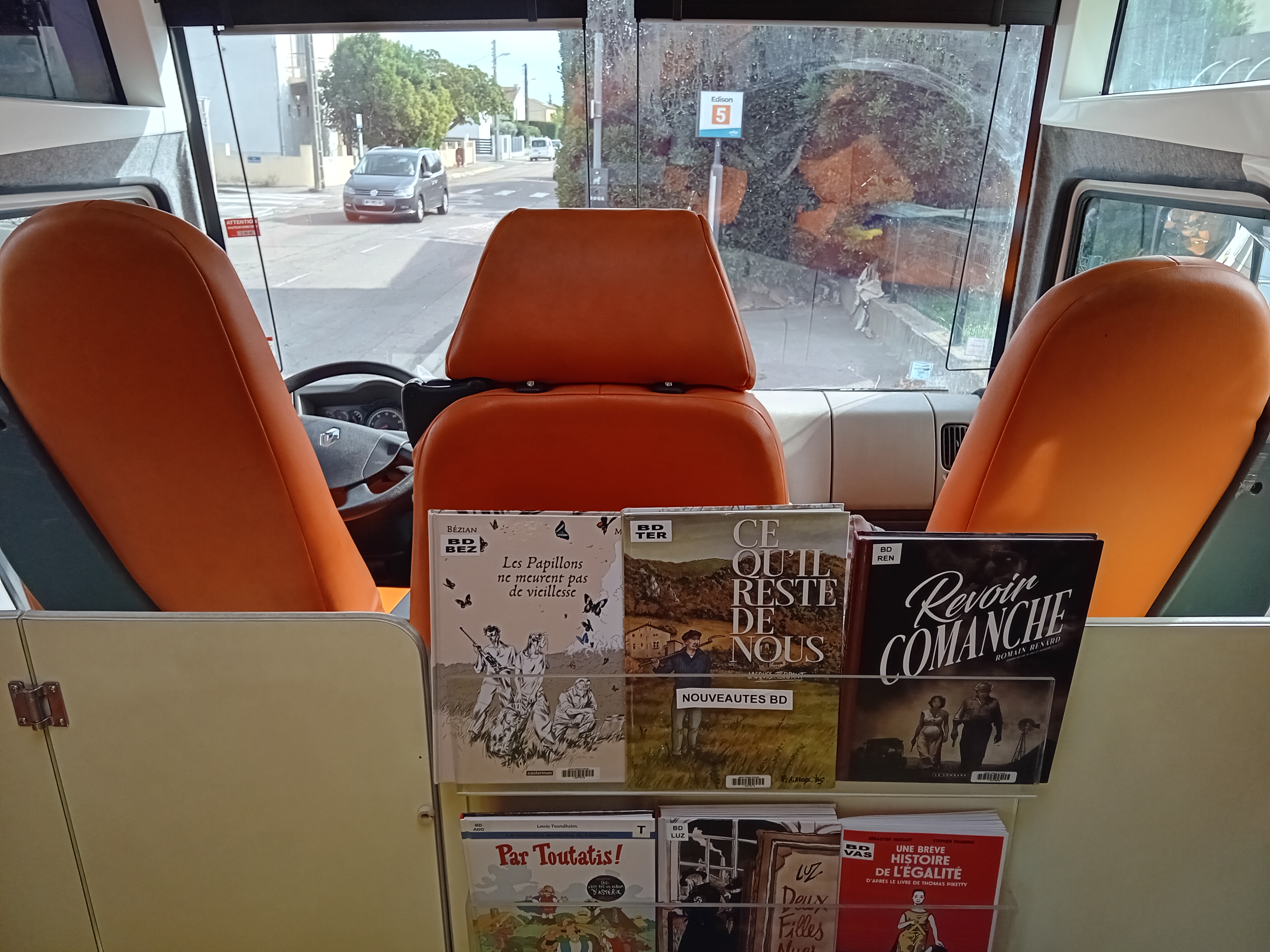 « Est-ce que l’on peut voyager avec ? » : c’est l’une des questions parfois posée à bord du médiabus par les enfants. Question à laquelle Charlotte, Viviane, François et Mostafa, qui accueillent à tour de rôle le public dans cet espace culturel « hors les murs », sont forcés de répondre non. Mais c’est bien la médiathèque qui ainsi se déplace jusqu’à ses lecteurs.