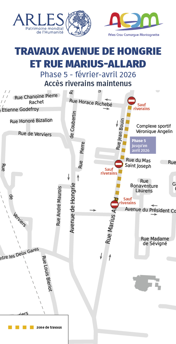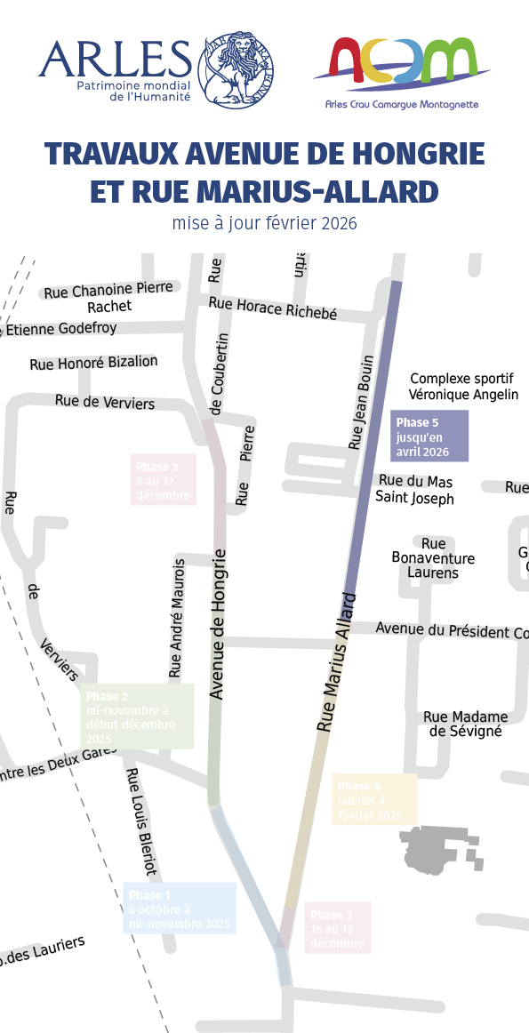 Le chantier va se terminer dans le calendrier fixé dès le mois d’octobre 2025 : les entreprises mandatées par la communauté d’agglomération Arles-Crau-Camargue-Montagnette viennent de commencer à intervenir sur sa dernière phase, la partie nord de la rue Marius-Allard. Il s’agit de procéder au renouvellement des réseaux d’eau potable et d’assainissement dans la portion de la rue comprise entre les croisements avec l’avenue du président René-Coty et la rue Horace-Richebé.