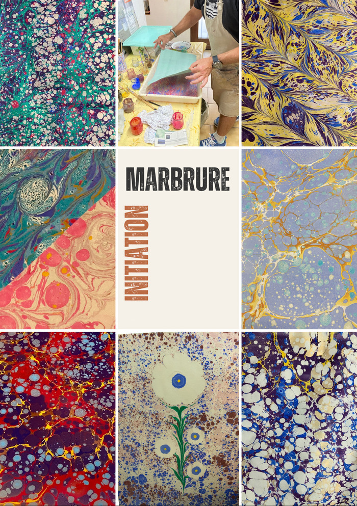 Plongez dans l’univers fascinant de la marbrure à la cuve, une technique artistique traditionnelle où les couleurs flottent à la surface d'un bain avant de se transformer en papiers uniques et poétiques.