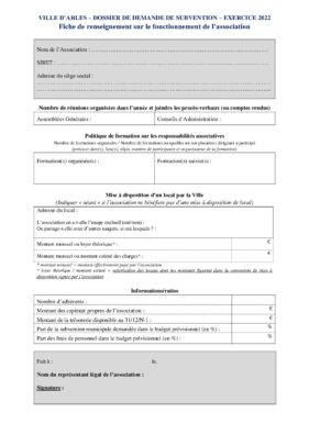 Demande de subvention 2022 – fiche de renseignement