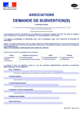 Dossier de demande de subvention 2021 pour les associations - Cerfa n°12156*05.